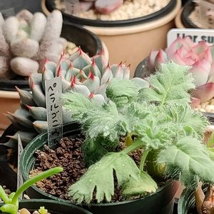 こんばんは😊 少しづつですが寒くなって近所の公園でも紅葉が楽しめる季節になりました🍁🍂🍁 去年は香嵐渓に行ったけど、今年はどこへも行けなかったなぁ〜😭 山はそろそろ枯れ落ちているくらいでしょうか🏔✨ ペラルゴニウム アッペンディクラーツム❣️ ふわふわの葉っぱが次々と出てきます🌿 細い毛の生えたモケモケは本当に可愛い🥰 塊根からこの葉っぱが出てくるとは、反則です🤤💓