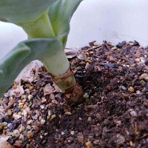 神刀😺 水やリしたほうがいいかなーって外に出てみたら、薔薇の鉢下が濡れてたので雨降ったんだなーって水やリ中止😆 その代わり、草抜きしてた😁 見ると、神刀さんの下葉が枯れてたので、枯れたところをむしったら新芽が二つついてた😁🎵 神刀さん、カットして増やそうか考えてたけど、ちっちゃい子がもうちょっと大きくなるまでこのままかなー😆 全長50cmあったのに雪に当たって半枯れして葉先くらいになっちゃったし、動きも遅かったから今年はこのままかカットか悩んでたとこだった😁🎵 ただ根本らへんが、枯れてきてそう?🤔 とりあえず支柱して様子見です😁🎵 神刀さん、もう一鉢が溶けてなくなっちゃったから、子供ができて嬉しい誕生😆💕