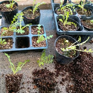 ネモフィラ 種蒔きから約1ヶ月、今日鉢上しました😃 今シーズンも小さな鉢の中で這わす事をベースに頑張ってみます❗ 腕の見せ所😅