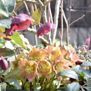 クリスマスローズ ウィンターゴールド ホワイト→ピンク→グリーンに色変わりしてきました✨ 朝日に照らされて美しい🌤