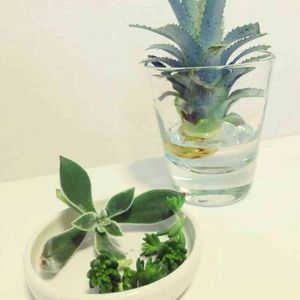 パイナップル食後の楽しみ😁 ヘタ(冠芽)を少し乾かしてから植えると良いとmatisiaさんから教えてもらいました。 どうですか? うちのエアプランツ。 (意味違うって?) 隣には憧れのコウモリランを添えて。 (水耕栽培のレタスだろって?) なんかやってて少し虚しい… やっぱりホンモノが欲しい…