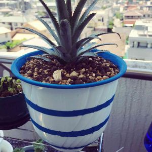 7.16upした、スナックパイン🍍 発根したので鉢植にしました! 🔰ここから、どうなるかわかりません 観葉植物のように、葉っぱだけでも楽しめれば…💚ラッキー