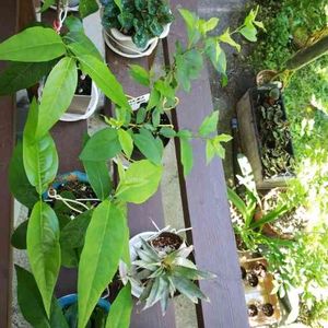 我が家の3号鉢シリーズ ウメ→遊歩道のウメの下で拾った種が成長したので剪定した枝の挿し木。 ロウバイ→近所のお宅の塀の外で拾った種からここまで成長。 ガーデンシクラメン→赤札救済50円。 スモモ→頂き物の品種不明のスモモを美味しく頂き、その種から育った木を剪定した枝の挿し木。 スナックパイン🍍→極小規格外でお安かったのでネット通販。美味しく頂きました。で、ブスッと植える😄 拾い物と格安品と食べたら植えると挿し木エンドレスのコーナーですね☺️