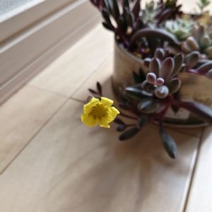 夏に瀕死だった虹の玉。 根元にちっこいおこさまが😍 回復後、鳥に引っこ抜かれ2つに別れてしまい、 寄植えに入れて越冬中。 母の日に娘にもらい、 どうしても枯らせたくない この虹の玉。 春が楽しみ✨