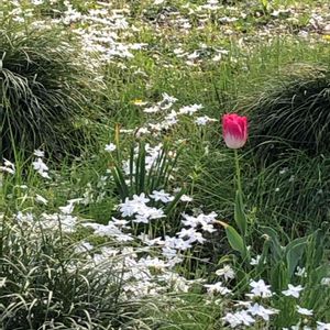 おはようございます。 またまた何植えたっけ…😅 秋に、あっちにこっちにと、隙間を見つけては球根を植えています。そして、隠したドングリの場所を忘れるリスのように、どこに何を植えたのかを忘れてしまいます。メモしておけばいいのに、後でと思っているうちに春が来て…。植えたことさえ忘れてしまったり…💦 スプリングスターフラワー。 名前の書いてある紙が残っていて分かりました😅😅😅 写真は白い花だったけれど、この色、好きです。 調べてみたら、スプリングスターフラワーは、ハナニラのことだと分かりました。庭に咲いてほしかったハナニラ。よかった😊