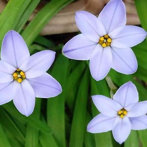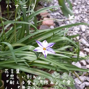 ˚✧₊⁎🍃Spring star flower*:🍃💫 .。.:* 花言葉は「悲しい別れ」「耐える愛」「恨み」「卑怯」「愛しい人」「星に願いを」。かわいい花なのに、花言葉にギャップを感じます。 ハナニラの花の色は、白や薄紫、淡いブルーです。この色から「悲しみ」を連想させ、旺盛な繁殖力や、乾燥した土地に対応できることから「耐える」イメージができます。 また花からはよい香りがするのに、葉や茎を傷つけると刺激臭がすることと、毒を持っている事が「卑怯」「恨み」という花言葉になったのでしょう。「星に願を」は花の形が由来しているようです。 ハナニラの名前の由来は、葉をちぎったり揉んだりすると、ニラのような刺激臭がすることから名付けられました。英名では「Spring star flower」といい花の形が星型で、春に咲くことにちなんでいます。(hanaさんの記事より) 🍃職場の花壇には手入れ入らずのハナニラが咲きパンジーに負けない可愛さと存在感を見せてくれています♪