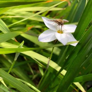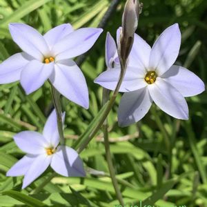 昨日のお散歩で見つけた花韮。 芝生の広っぱに突然生えていました。 🦜か🙋♀️か…