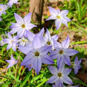 ハナニラ🌼🌼🌼 ネギ科ハナニラ属 植えっぱなしにしても、春になると、 庭のあちらこちらで、必ず咲いてくれます🤗 🌼ニラを植えている場所にも、ハナニラが😲😅 葉っぱ、食べてるかも😂