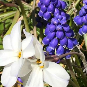 ハナニラとムスカリ💜 ご近所さんの畑でパチリ📸 我が家のハナニラはまだ咲きません😅