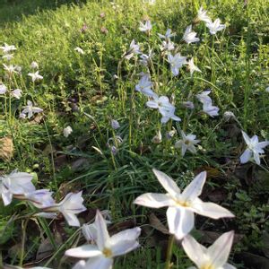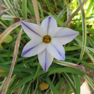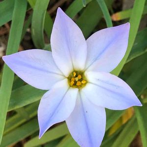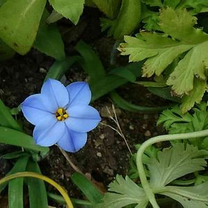 先日、山道で1つだけぽつんと咲いててめっちゃ気になったの。 何この三菱マーク重ねたような花びら〜って…凄〜く検索して、多分ハナニラだな〜と、自分だけで納得してた😊