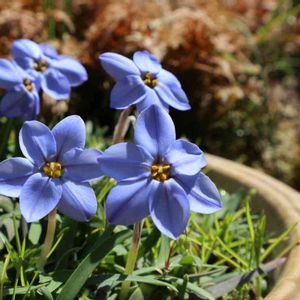 春の陽射しを浴びて ハナニラ(花韮)が風に揺れています。 何だか ほっこり。 星の形の青い花。 名のとおり 葉っぱからニラのような香りがします。 この花韮は『ジェシー』