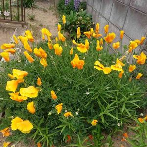 友達が見かけたらしいのですが… 奥はルピナスですが、 手前の黄色いお花はなんでしょうか? 教えてください🙇