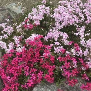 今日のお花 芝桜 ピンクの絞り模様がかわいい💕 今年庭の斜面に植えました。 ピンクのカーペットになるまでに何年かかるかな…😅