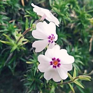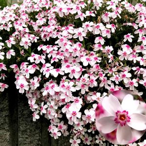 家の西側には白い芝桜 この子は南側の花壇の端っこにモリッと🌸 1つ1つのお花が (* ̄Θ ̄) (* ̄Θ ̄) (* ̄Θ ̄) 中心に可愛い桜🌸 ちょっとモコモコ.*❁ฅ´ω`ฅ❁*.