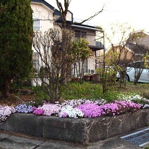 芝桜4 全景2 希望はシバザクラが垂れてコンクリ色を消すことです あと何年 かかるかな?