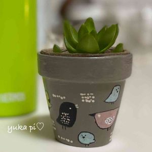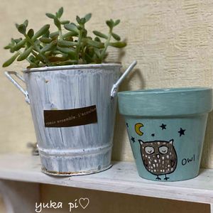 リメ鉢🕶 ぷくぷくして可愛い♡ 寒くなったのでエアコン全開😳 お部屋の乾燥が激しく💦 水やりも慎重に\(//∇//)\ 塗りムラが💧 味があって良いかな〜♪ ドンマイ٩( ᐛ )و