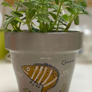 アロマティカス🍃 5月頃からキッチンの出窓に いらっしゃいます♫ ずっと元気です♡ 今夜は鉢を着せ替えてあげました^ ^ これ。。カメレオン?\(//∇//)\ なんだか…おデブさんです 笑