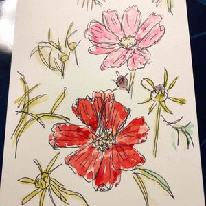 造花を一から作る機会があったので 完成品をあえて絵で書き直してみました 写真より「こう作りたかった」 と言うイメージや印影を付けたので 実際に完成した造花の写真より 若干キレイな見栄えです★ 茎と葉は金色に塗りました\(^o^)/