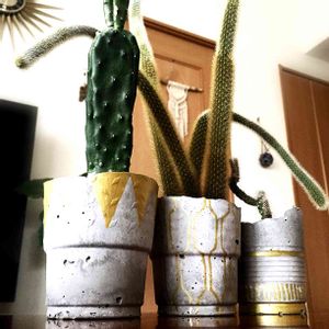 綿帆布に手描きのイラスト。 サボテンの鉢カバーができました。