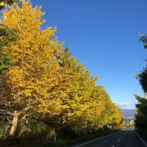 秋といえば黄色も! イチョウ並木✨ 矢巾町の南昌トンネルの入り口付近🍂 青空に映える黄色も良いね👍😊