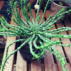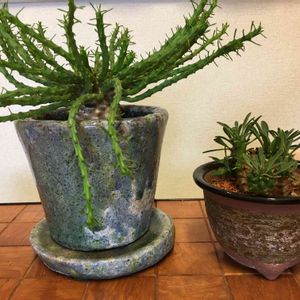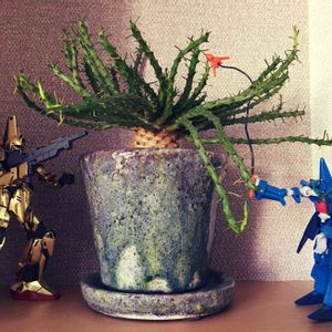 せっかくのコーデックスコンテストなので、コーデックスを初めたばかりの方、これから育ててみたいと思っている方がいたら参考にして頂ければ幸いです。 多少上から目線の部分もあるかも知れませんがお許し下さい コーデックスには大きく分けて2種類あります。 夏型:4月~10月くらいまでの気候で活発に活動するもの 冬型:10月~6月くらいまでの気候で活発に活動するもの とはいえ、真夏や真冬は成長が鈍りますし、梅雨の時期は日照量が少なく連日の雨などでコーデックスにとっては好ましくない季節となります。ですので未発根の株などを購入した場合は夏型なら4月から梅雨入り前までに発根を出来る限り目指しましょう。冬型も今の時期は寒すぎてあまり根を出さない為、涼しくなってきた10月くらいから根出しすると宜しいかと。 購入時期:夏型なら桜が咲き始めた頃、冬型なら彼岸花が咲いている頃がベストかと。真冬の時期に夏型を買ったり、逆に真夏の蒸し暑い時期に冬型を購入するのは避けた方が吉です。自分が探していた植物を見つけるとどうしても買いたくなりますよね?私もそうです(笑)でも良い結果は得られなかった事が多いです。私の知識や経験不足もあると思いますが。 鉢:育成する事に関しては言えば、黒色のプラスチック鉢がおすすめです。理由は安い、軽い、鉢内の温度を上げやすいからです。欠点はダサい事ですかね(笑)最近はデザイン製が高い陶器の鉢もたくさん出回っていますね、数年前は鉢の選択肢はあまりなく、鉢とお気に入りの植物で全体をコーディネートする事は難しかったのでとても良い傾向だと思います。しかしながら自分は使っていません。なぜならばあれらの鉢で育てられる自信がないのです。陶器鉢は鉢内の温度が上げづらい…特に未発根株を買う自分にとっては大きなデメリットです。もう少し上達したらいつかは使ってみたいと思っています。ですので、自分ライフスタイルや植物に何を求めるのかで選択していけば宜しいかと思います。しかしあくまで相手は自分と同じ「生き物」である事を忘れないで下さいね。 購入店:コーデックスはお財布に優しくない植物です(笑)信頼の置けるお店での購入をお勧めします。 少し高くても管理が行き届いている所で買う事をお勧めします。しかし生き物ですので、良い店の全ての植物が良い訳ではありません。当然状態の良くない個体も中にはあります。ですのである程度自分で見分ける事も必要になってくると思います。悲しい話ですが、数年前は管理もしっかりしていたのに黙っていても飛ぶように売れる昨今の傾向から明らかに必要な管理を省いてしまっているお店も見受けられます。すぐに弱ってしまいそうな個体も最近多く見かけます。気に入った株は一度目で買うのではなく、二度三度お店に通って店主に状態を確認しながら購入すると良いと思います。 しかし自分の手に渡った以上、生かすも駄目にするも自己責任。お店に文句を言うのではなく、原因を分析して改善した方が次に繋がると思います。 発根管理:安いから未発根株を買ってしまった、買って鉢から抜いたら根がなかった…良くあります(笑)基本的には成長期から外れた時期に買わない事。元気な時期に発根剤などを使って一気に発根まで持っていく事。かなり高額ですが、海外ブランドの発根剤は効果も高く期待できる実感がありました。未発根のコーデックスは体内の余力があるうちに発根させて冬の休眠に備えたいところです。また、発根管理している間は極力鉢を動かさない事も重要です。せっかく出てきた細根がちぎれてしまいます。あとは直射日光を好む種類でもいきなり直射日光に当てない事、しばらくは不織布などを二重三重に巻いて、柔らかい光に当て少しづつ環境に慣らしてあげると良いと思います。 偉そうに長文で書いてしまいましたが、楽しみ方は人それぞれですし、住んでいる所や環境も千差万別です、ですので上記が当てはまらない事もあると思います。事実私もほんの数年栽培しているだけですし、これまでに沢山のコーデックスを駄目にしてしまいました。しなくても良い失敗を減らして、この魅力的な植物と少しでも長くお付き合いできるきっかけにして頂ければ幸いです。 長文失礼致しました。 まだがすかる