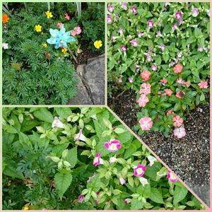 こんばんは🌙😃 ここのところ、ようやく秋めいてきたけれど今日は蒸し暑かったです。 マンションの植え込みのお花たち。お花の会の方が真夏の暑いなか 水やりしてくれたり植え替えしたりしてくれてました。 ありがたいです(*^^*) 左上の写真に風車の花。 こういうの好きです♪