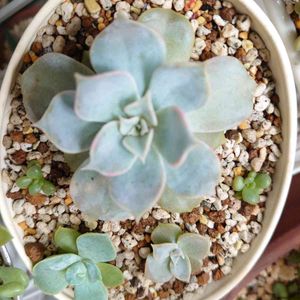 こんにちは(*´︶`*)ノ゙☆ 昨年、私が葉っぱむしりすぎた『桃太郎』です💦 さすがに小さくなっちゃって⤵️ 最近やっと本領発揮(*´︶`*)ノ゙☆ 下にも赤ちゃんつけて元気になってきたかな💦 下の2つの写真は昨年むしった葉挿しっ子✨ 夏を耐え残ってくれた子✨ 長期戦だけど✨来年の秋には全員同じ鉢に植えたいなぁ(❁´ω`❁)