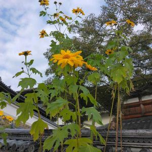 「黄色い皇帝ダリア! 咲いてるよ💛」って、 ご近所さんから聞きつけて 行ってみたら𓂃𓈒𓏸 皇帝ヒマワリ🌻でした♪ (*’ー’*)ノ