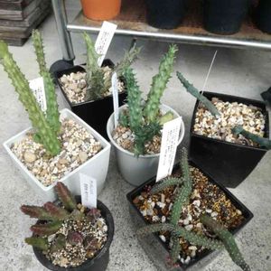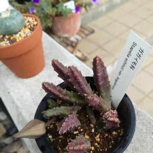近所の園芸店に久々に寄ってみたら、HCより安く多肉が売っていたのでいくつか連れて来ました! 写真の多肉に大花彩閣とタグが付いてましたが調べても紅彩閣ばかり出てきます。 色々検索していたら漢字の違うサイカク「犀角」で出てきました‼️やっぱりガガ様仲間の「大花犀角」でした😊