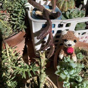 ❶小さいガガ様2点 後ろにペンデュラのネームプレート がありますが、見えてる赤茶のは ペンデュラではありません💦 右手前のは、マクドガリー だったかな? カメレオン 🧶🐻 ❷ ガオガオさんに花芽かな⁉️ ❸ オビフェ ❹ エケベリア かな 何か忘れた💦 ❺ 今日の彩雲🌈