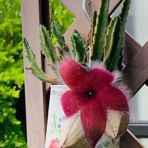 ガガ様 スタペリア ヒルスタ 今朝咲いてました😆 鉢が小さいので🌸も小さめです😆