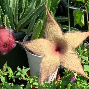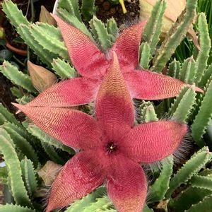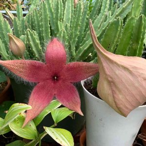 ガガ様 スタペリア ヒルスタ 昨日は、3輪咲きました😆 寒くなったので、まだ小さめのツボミが咲きました