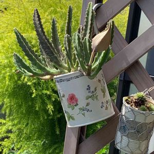 ガガ様、リメ缶に植え込んだ訳では無く プラコップに植えてあります💦 🍩ドーナツ状になったお花の写メを撮ろうとしたら、プラコップが落ちてしまい ガガ様がひしゃげました💦 まあ、枯れる事は無いでしょう😆