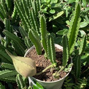 頂き物のガガ様 1年8ヶ月経ち フェルニア インシグニフローラ 多分初めてのツボミが🤗 先程、痛い手を騙し騙し納屋に避難させていた鉢を出し、水やりしました😆 同じように避難していても、平気なもの、 ちょっと干からびた物、色々ですね💦 お願いだから復活してね🥹