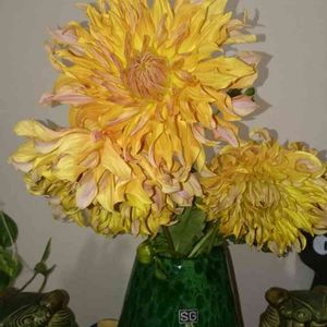大輪のダリア✨不思議な花で蕾はピンク開くにつれて黄色に変わります〜