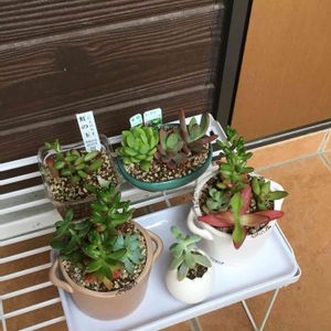 昨日の夕方🐶散歩で フラワーさんと遭遇❣️ で 多肉ちゃんを見にお邪魔しちゃいました😁 かわいい多肉ちゃんやクリロさんがいっぱいいました☺️💕 しかも グリネとルビネとドルフィンちゃんを 分けていただいちゃった💕 ちゃんと育てねば💦 フラワーさん ありがとうございました😊🌿 また遊んでくださいね😁