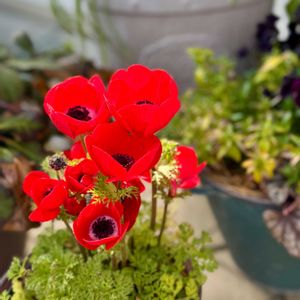 アネモネ❁⃘*.゚ ①2023.3.4撮影✨ 昨年2月に見切りコーナーから連れてきて、見切りのわりにはどの子も綺麗に咲いてくれて嬉しかったです( ˶>ᴗ<˶)🍀*゜ ②③④本日撮影 ①の子たちの球根が秋に芽生え今つぼみが上がってきました🌱⁎ .。❀ *⁎ .。❀ *.* ②の白い子は昨年花後に鉢を片付けた時に、鉢から出した土の中に残ってた球根が9月のまだ暑い頃に木かげで芽を出していて鉢上げしたものです🤗♬.*゚ 思いがけず見つけた時はすごく嬉しかったです🥰✨ 早い芽生えだったせいかもうここまで開いています♡𓂃𓂂✿¨̮*.゚ ③の赤い子は昨年咲いてるとこを撮るのを忘れてしまったのでこのまま元気に咲いてくれたら絶対撮りたいと思ってます🤳✨️♬.*゚ ④とても綺麗なブルー 昨年、見切りながらもよく咲いて楽しませてくれました❁¨̮ 今年もたくさん咲いてくれるかな〜 (*˘︶˘*)✨✨✨ 楽しみです⁎ .。❀ *⁎ .。❀ *