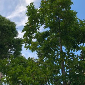 🌲近所の公園で コブシが空高くのびています🌲 今日は猛暑は免れたけれど ムシムシ不快な😟暑さ💦 樹と💭がさわやかです从*´◇`)