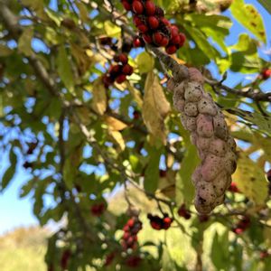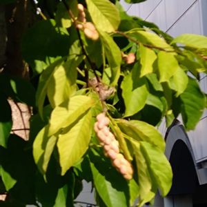 😉観察している公園の こぶしの赤い実から 房のようなものが‼︎ これはなんでしょう😓🙄⁉️