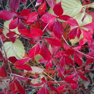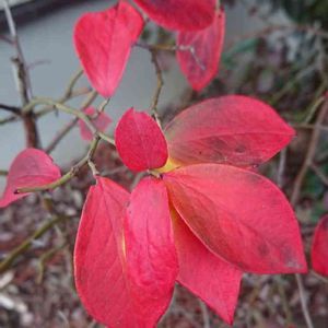 鮮やかなドウダンツツジと色褪せたヤマブキの葉っぱのアンサンブル✨