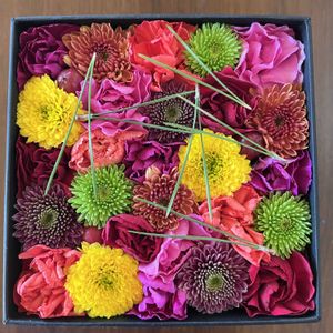 個展のお祝いに ボックスフラワー 紅白でちょっとお祝い感を増してみました。