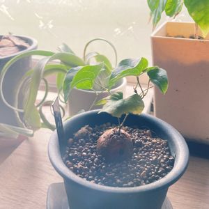 こんにちは😊 エバーフレッシュのチビ君🌿 新しい葉と芽🌱が活発になってきました。 風が強くて水がすぐに乾いちゃう💦 サスティー白いなぁ😅