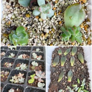 今日は動くと蒸し暑い💦 気温はだいぶ低くなっては来ましたが、油断大敵ですね( ᷇ω ᷆ ს ) 左下:春からずっと葉挿ししてる子 上:夏前にポチッた子 右下:先日☆になったブラックプリンスと仕立て直し中取れた子 これからの季節、成長が楽しみです💗💗💗 🏷⸒毎月13日と14日は葉挿しの日 参加します( •⌄• )