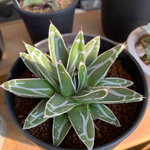 ■植え替え完了 ・アガベ シジゲラ ホワイトストライプ ・アガベ ビクトリアレジーナ コンパクトフォーム ・アガベ ストリクタ ルブラ ・アロエ ロマトフィルム sakarahaensis ・アロエ バーベラエ 謎のロマトフィルム。ただの昆布じゃないんです。ロマトフィルム属だったのがアロエ属になったようなんですが、多肉植物全書にも多肉植物写真集にも多肉植物写真集第2巻にも載ってません。世界の多肉植物3070種には3種(オリエンタレ、ペイリエラシー、プロフトラタム)だけ掲載されています。うちにあるのはプロストラツムで今回お迎えしたのはサカラハエンシス。プロストラツムもサカラハエンシスも同種な気もするんですが、ロマトフィルム通の方がいれば何か教えてください。そんな人、いるのかどうかは知らんけど😝 最高気温30℃、最低気温22℃