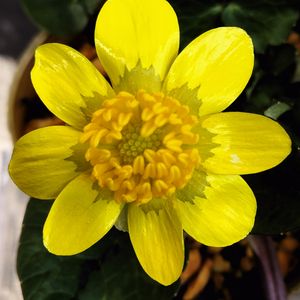 凍っていた花も溶け良い☀です😀 キラーン*¨*•.¸¸☆💛 姫リュウキンカ咲きました❣️