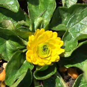 🏷日曜ビタミンカラー♪ 八重咲きのヒメリュウキンカのお花が咲きました♪ アカガネよりお花は小さいけどゴージャスで美しいです(ღ˘⌣˘)♫