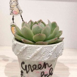 お正月に買った子たちをやっと植え替えることができました😉❣️ 今日から 仲間入り( ˊᵕˋ )♡postが続きます☆。.:*・゜ 一発目の今日は~、 花月夜 そしてそして、 TORATORAさんからプレゼント🎁 Misakiさんのリメ鉢を頂きました💕💕💕 初めて自分以外の方が作ったリメ鉢を手にして感動😭✨ プレゼントして下さったTORATORAさん、 作って下さったMisakiさん、 本当にありがとうございます🙇♀️💖 植え替える前に、左右上下クルクル何回も見つめました👀✨ うさぎさんとにんじんのピックまで🙄ほんとに技が細かい🙏勉強になります❤️ おひとり様でIN🕳した花月夜さんとのマッチ感が とってもステキ♪( ◜௰◝و(و "