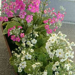 「プリムラマラコイデスうぐいす」のローズとホワイト(*^^*) ・・・ちと広がってますが(^^;)