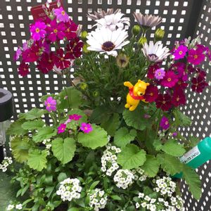 春の寄せ植え🌸 プリムラが伸びてオステオスペルマムを抜いてしまいました😐 続々と開花中〜❁⃘*.゚ 私はおたふく風邪でダウン中〜😔