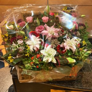 ホテル日航様での会食パーティーにて サプライズでびっくりするような花をとのご依頼で 宝箱風の箱に色んな花を散りばめてみました。さてビックリしてくれたのでしょうか‥ご依頼ありがとうございましたm(__)m